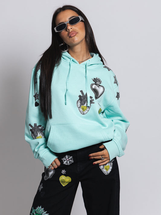 In offertaFelpa con cappuccio oversize con stampa 3D