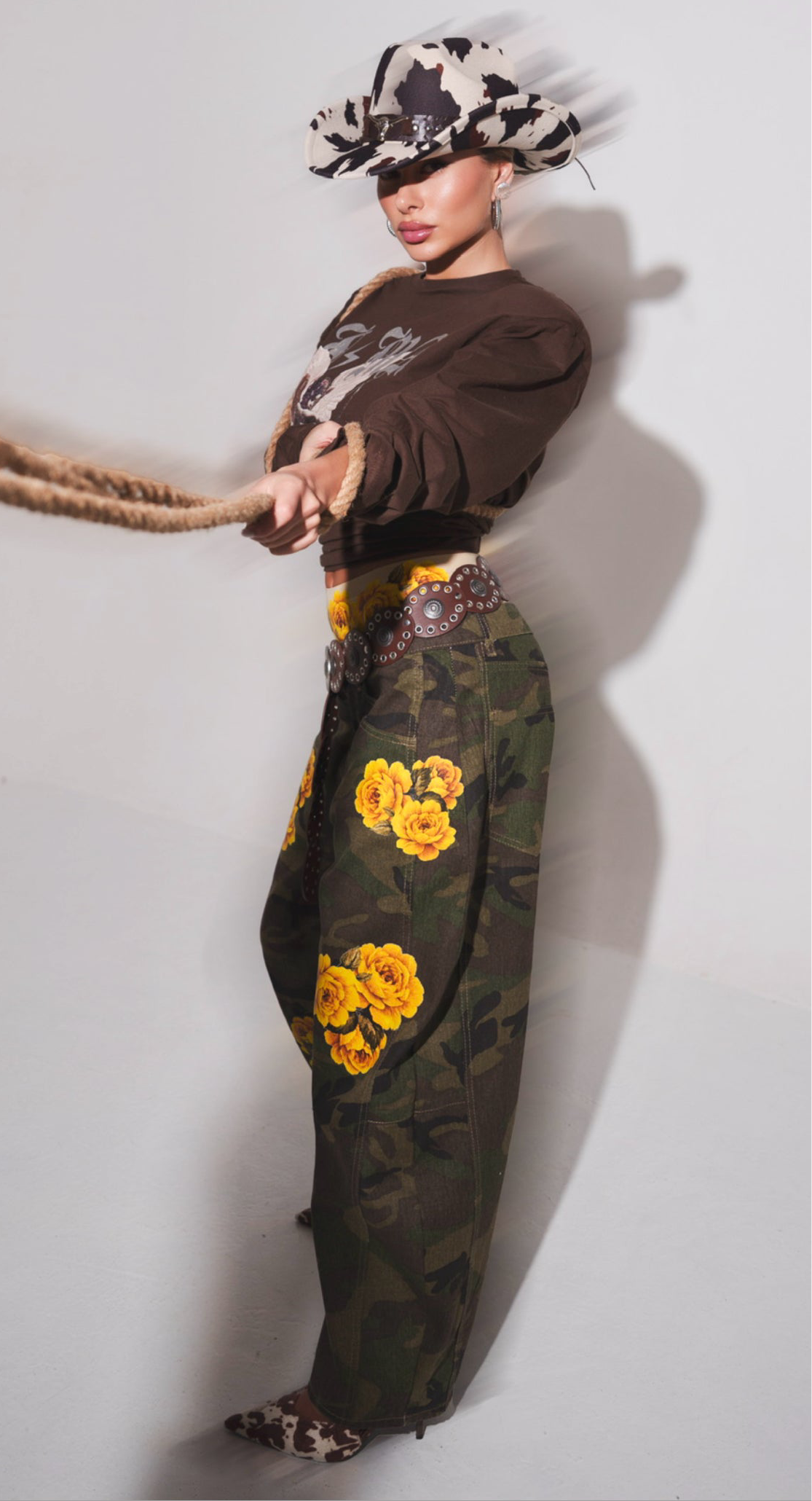 Taglio ballon fit che si stringe leggermente sull'orlo. Vita media.