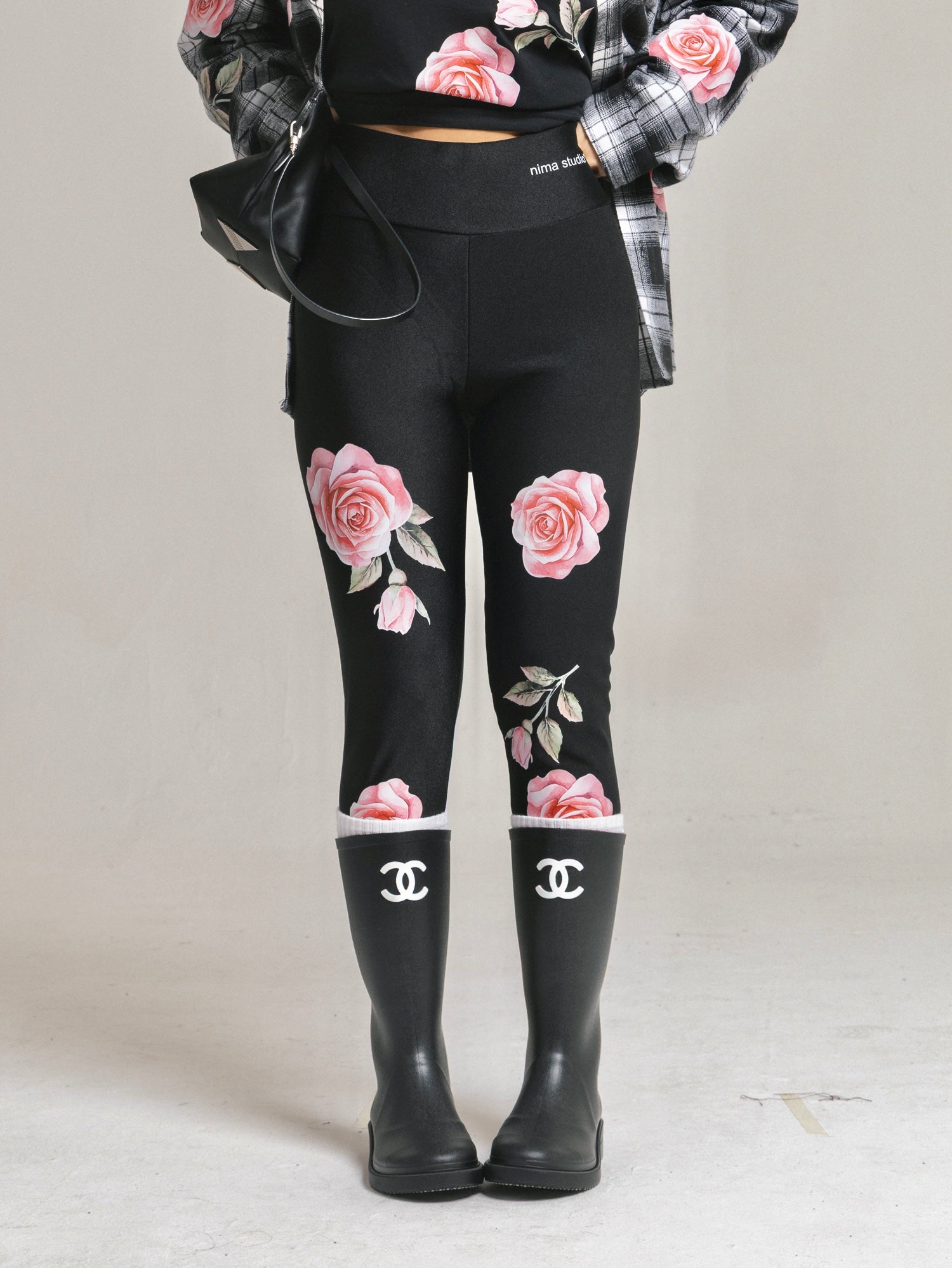 Leggins in lycra elasticizzata modellante con applicazione di stampa 3D