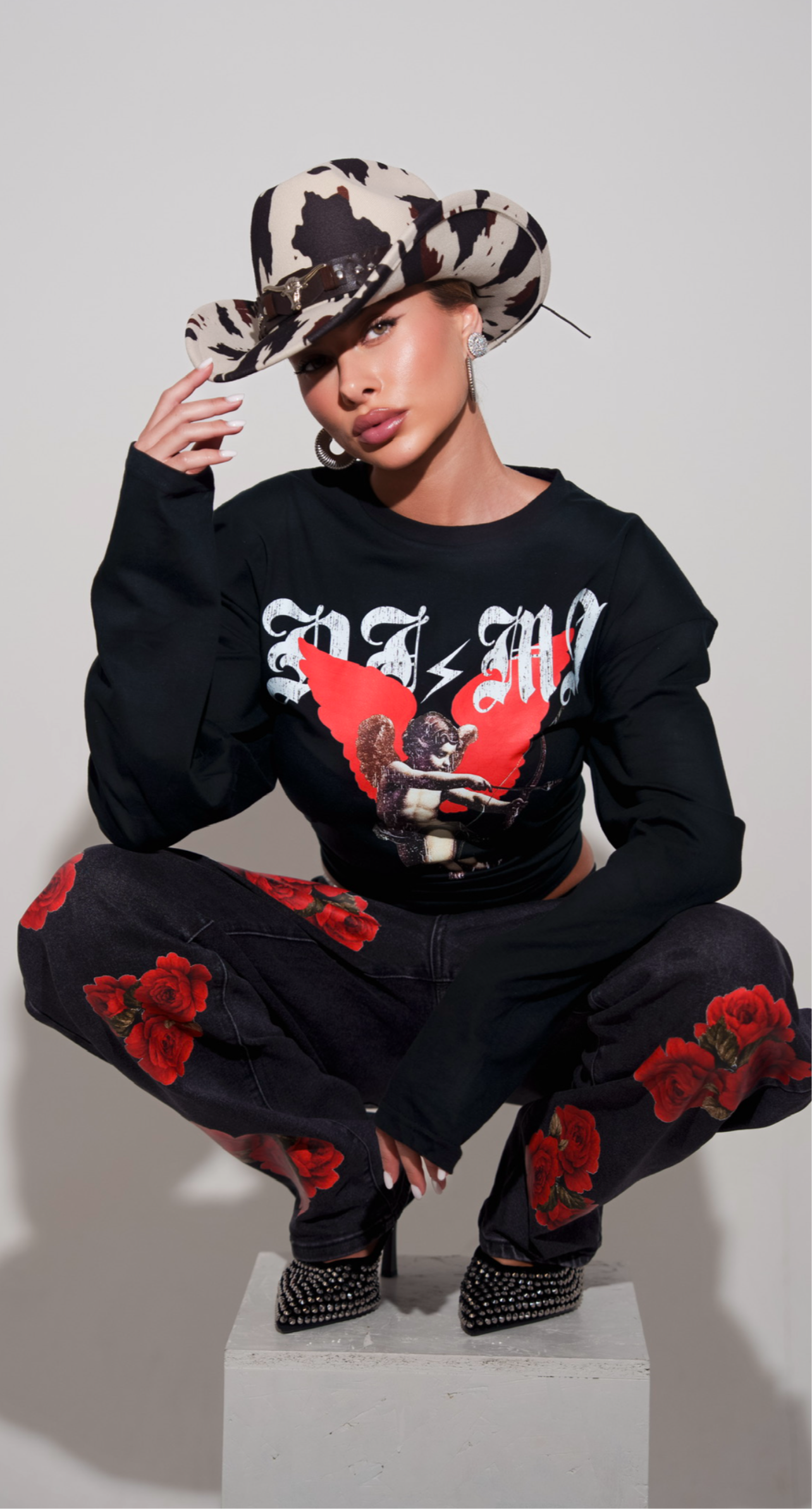 T-shirt manica lunga stampa effetto vintage